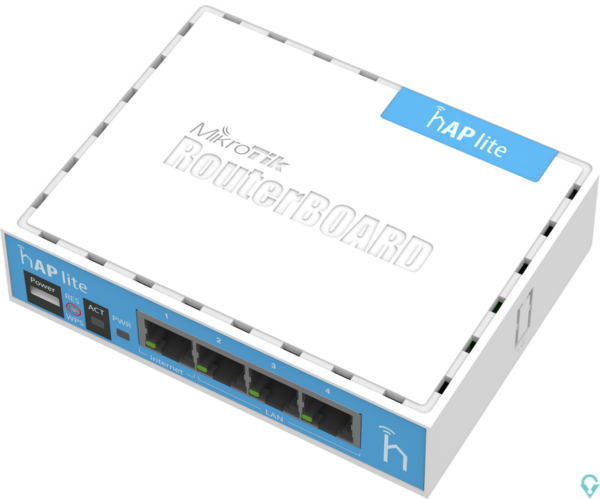 RB941-2nD hAP lite with 650MHz CPU, 32MB RAM, 4xLAN, built-in 2.4Ghz 802.11b/g/n 2×2 two chain wireless with integrated antennas
